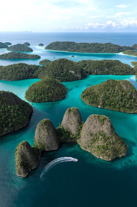 Raja Ampat (or the Four Kings) is an archipelago consisting of the islands of Misoool, Salawati, Batanta, and Wiageo which are surrounded by over 1,500 small islands and cays. Formerly known as Irian Jaya, this area is now part of the newly named West Papua province of Indonesia and is located on the northwest tip of Bird's Head Peninsula, on the island of New Guinea.