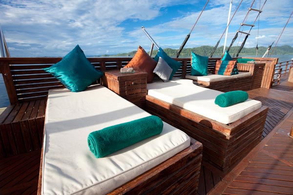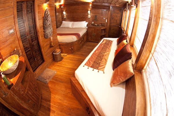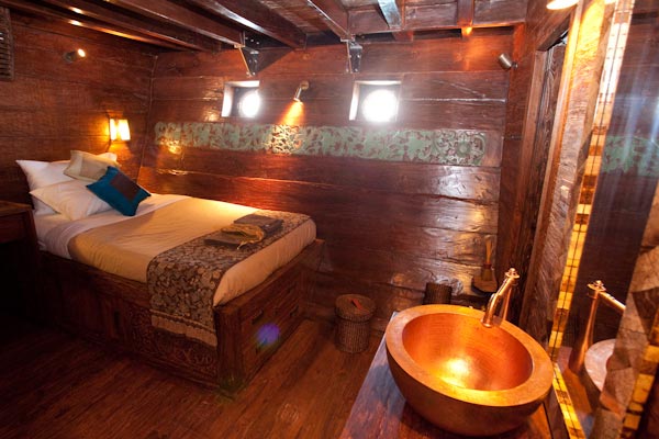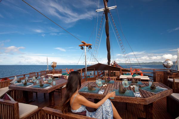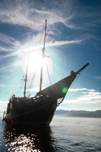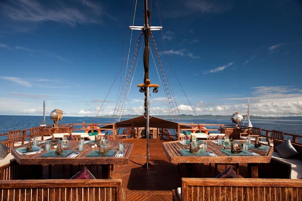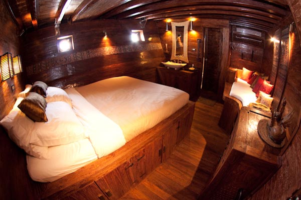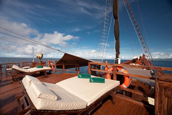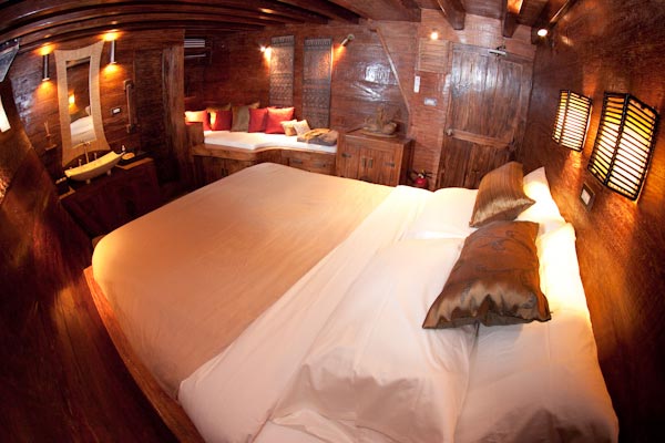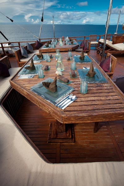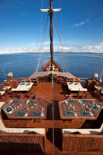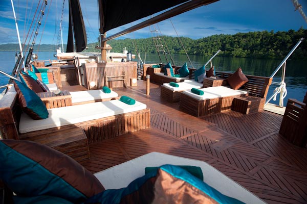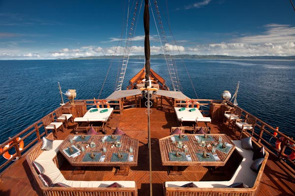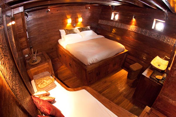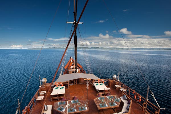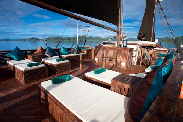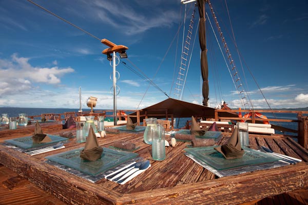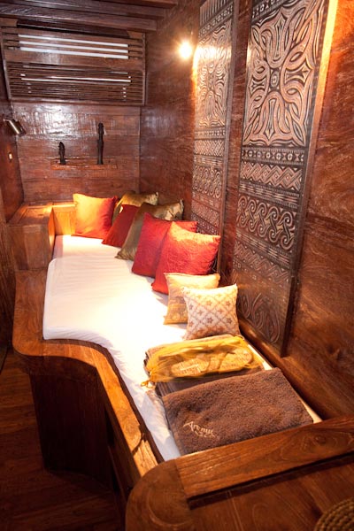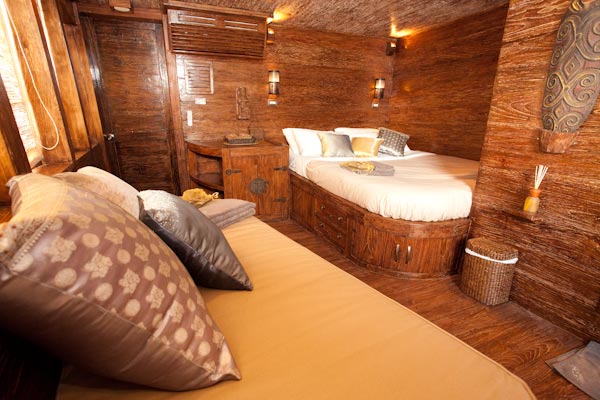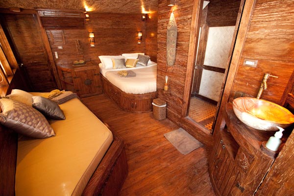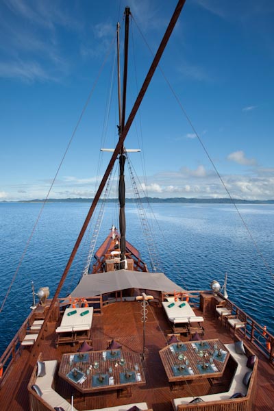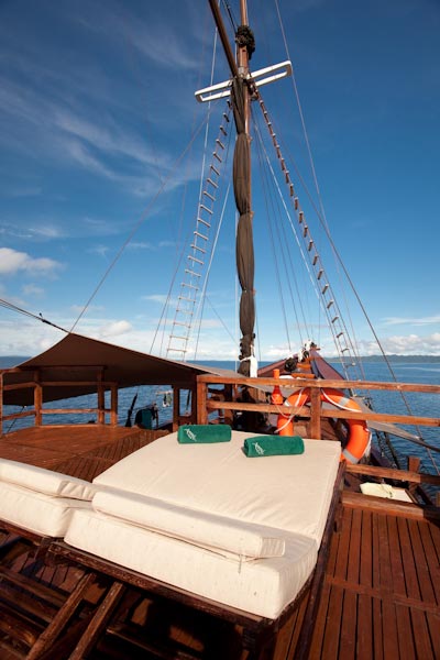 Arenui is a typical Phinisi style motor sailor with two masts, 42m long and you will enjoy the charm of a traditional boat combined with the comfort of a modern one.