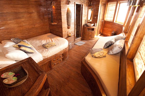 Arenui can accomodate 18 passengers in 9 cabins: