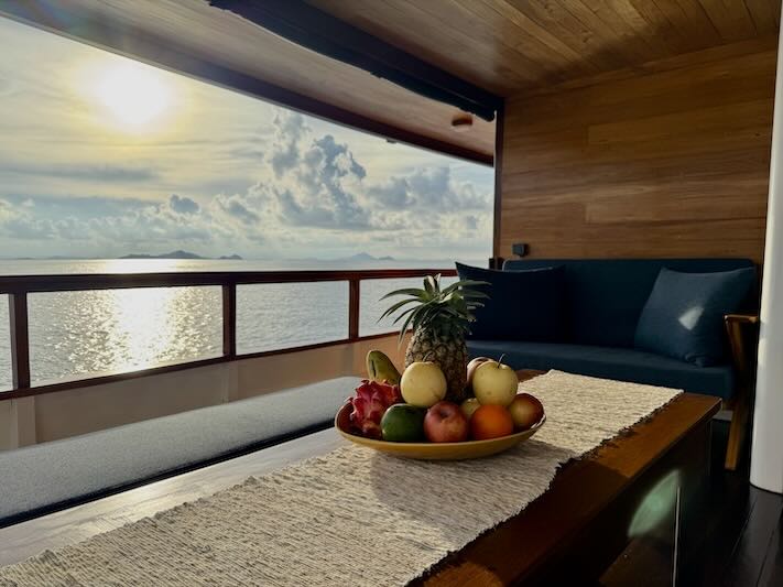 With the generator used only when necessary, guests can expect peaceful sunset cocktails, uninterrupted ocean views, and nights filled with the soothing sounds of waves against the hull.