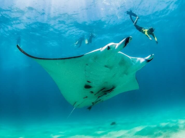 Snorkeling here reveals a kaleidoscope of marine life, from huge manta rays gliding through cleaning stations to blacktip reef sharks patrolling vibrant coral gardens, alongside unique experiences like drifting through blue-water mangroves teeming with juvenile fish and nudibranchs.