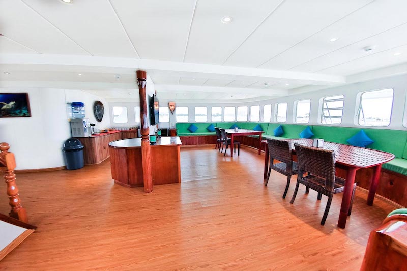 Carpe uses a diving dhoni built by the same company as the Carpe itself with the best facilities, including hot water shower/ toilet, 2 fresh water showers at the back and a fresh water tank for cameras.