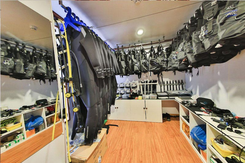 Additional benefits will be fast and safe transfers to the dive sites and extra comfort for putting on your gear.