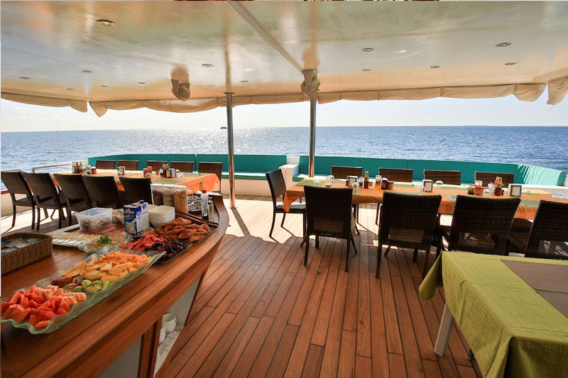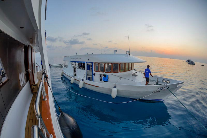 Carpe uses a diving dhoni built by the same company as the Carpe itself with the best facilities, including hot water shower/ toilet, 2 fresh water showers at the back and a fresh water tank for cameras.