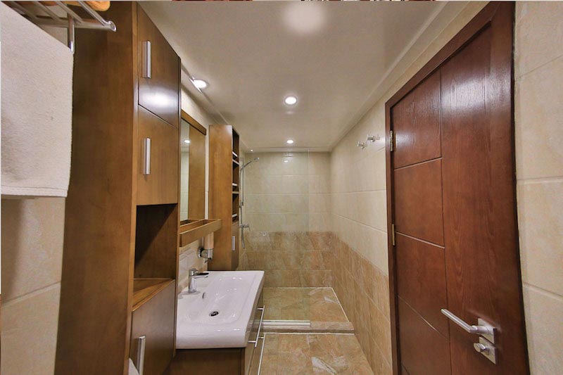 The 4 junior suite cabins have king size (California) beds which can be separated in two single beds, whilst two are suitable for a couple with one double bed.