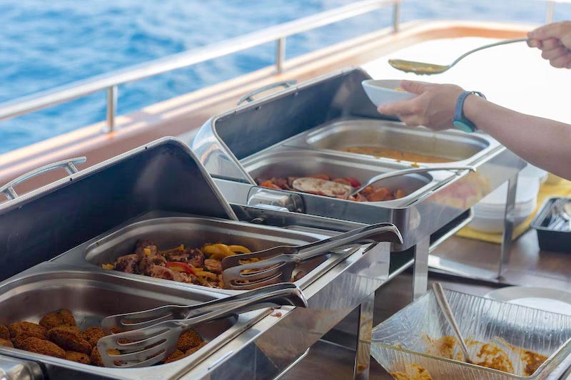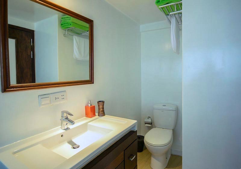 Accommodation in air conditioned cabins with ensuite shower toilet, toiletries, towels and beach towels.