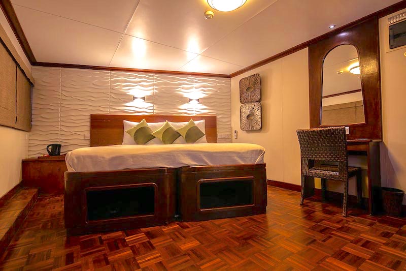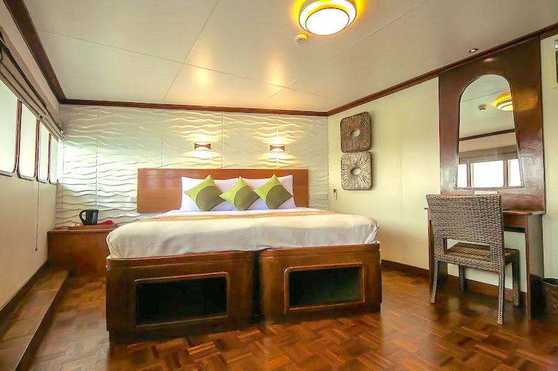 The different cabin types are Suite (2), Superior (2) and standard (6). All cabins have individually controlled AC, safety deposit boxes and their own private bathroom with toilet and hot water shower.