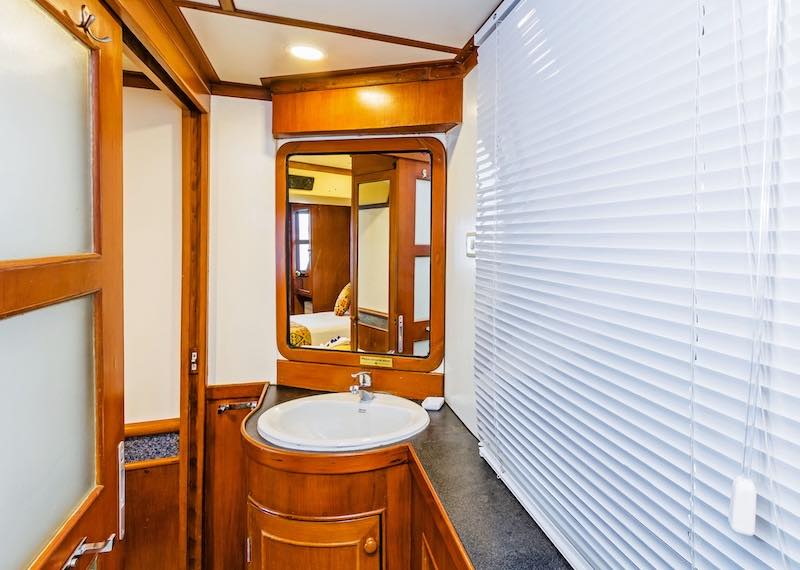 The master, single and deluxe cabins have ensuite bathrooms, refrigerators and panoramic windows offering great sea views during your liveaboard.