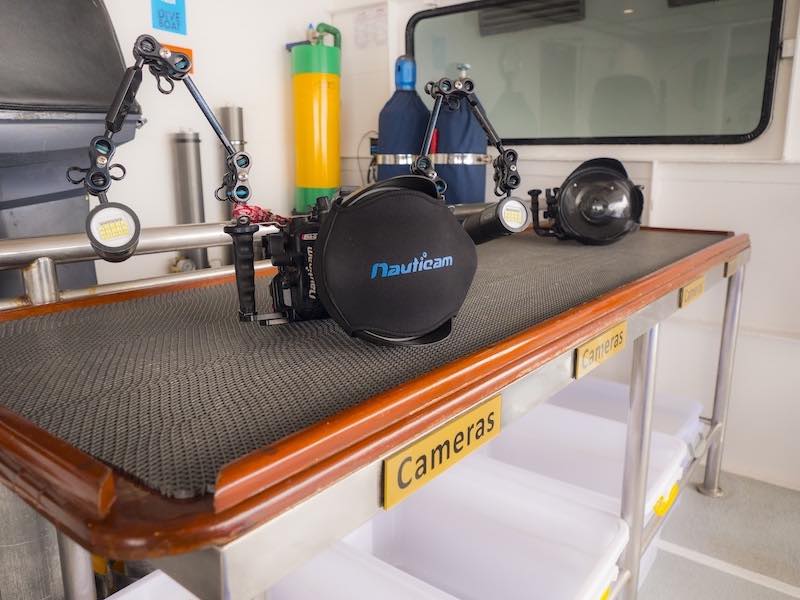 The dive deck is huge with plenty of room to gear up, individual boxes for your dive gear, camera table and loads of rinse tanks.