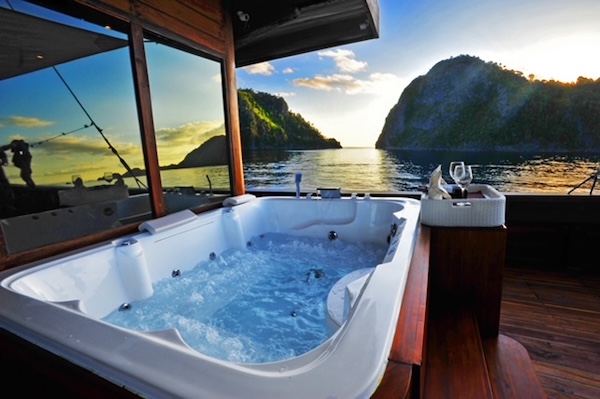 The main deck is the social hub of the ship, featuring two Jacuzzis and an outdoor seating area for relaxation while enjoying the stunning Indonesian scenery. The indoor air-conditioned salon and restaurant offer a cozy space for dining and entertainment, with a 55" TV, touch-screen karaoke, and a fully stocked bar.