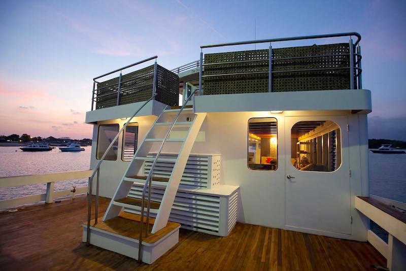 Other areas include the lounge and dining area and an outdoor lounge and sun deck.