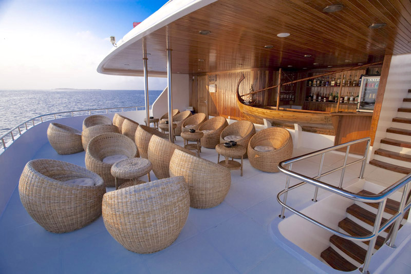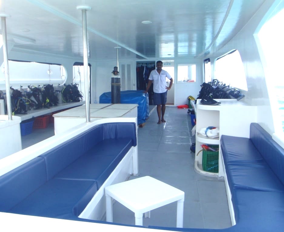 All diving in done from a separate diving dhoni (a traditional Maldivian vessel) used for diving the Maldives most amazing reefs and to keep all the tanks and compressors separate so you are not bothered by the noise.