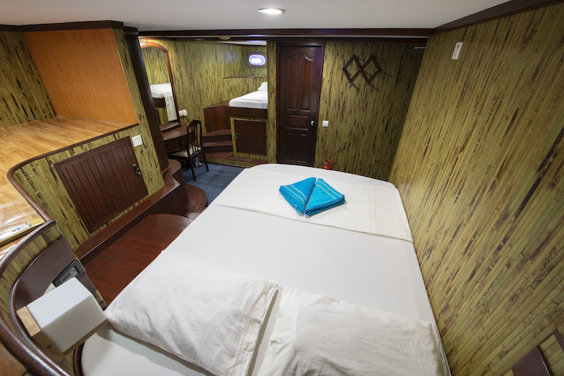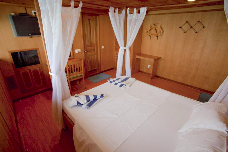 There are 3 suites located on the upper deck with a king-size bed, monitor LCD with CD/DVD player (maximum for 2 pax).