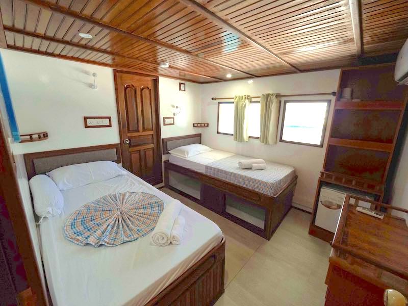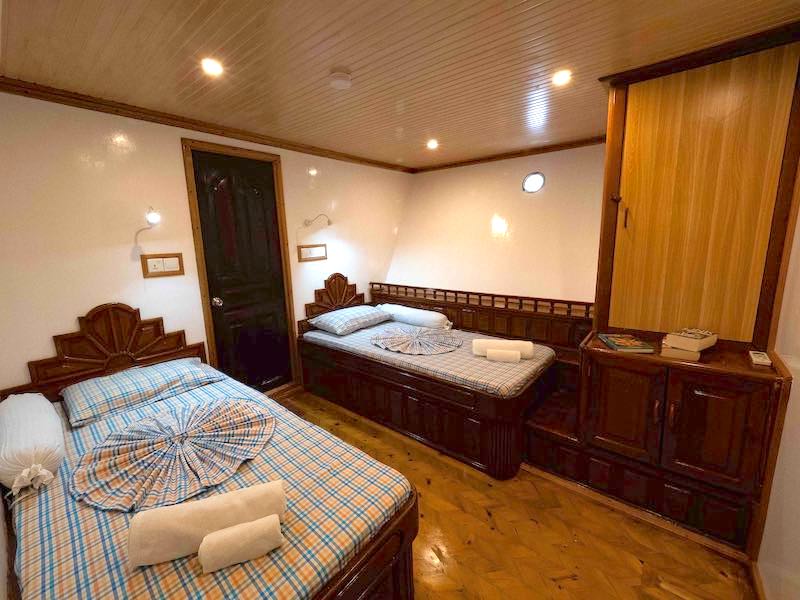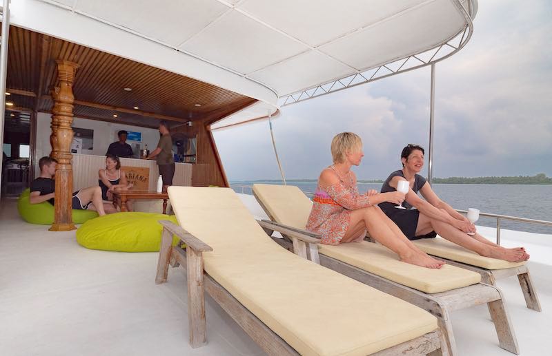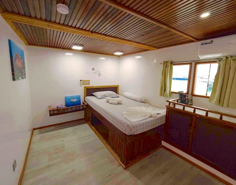 This traditional-style safari boat EcoPro Mariana is 30 meters long and has 9 cabins, each with its own bathroom and individually controlled air conditioning.