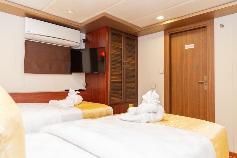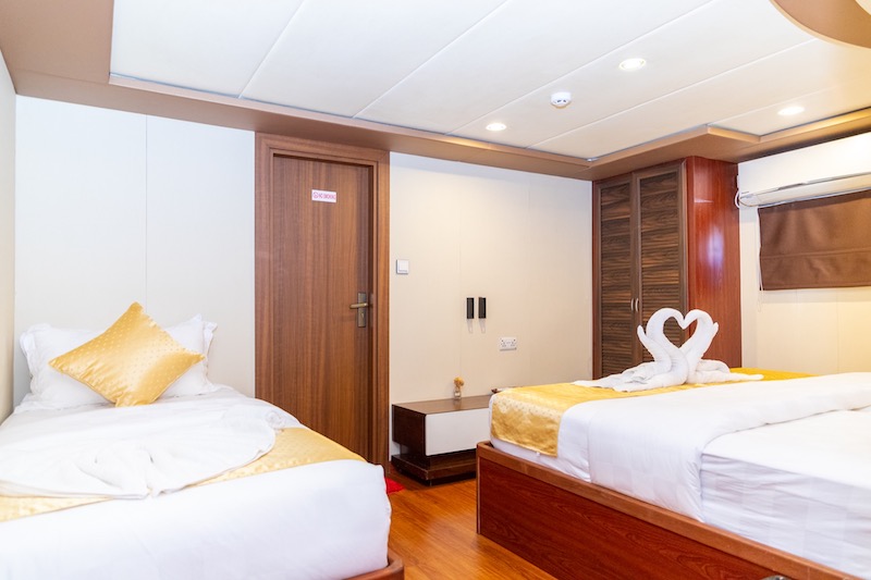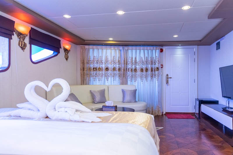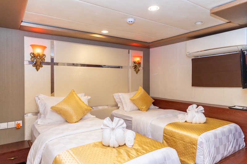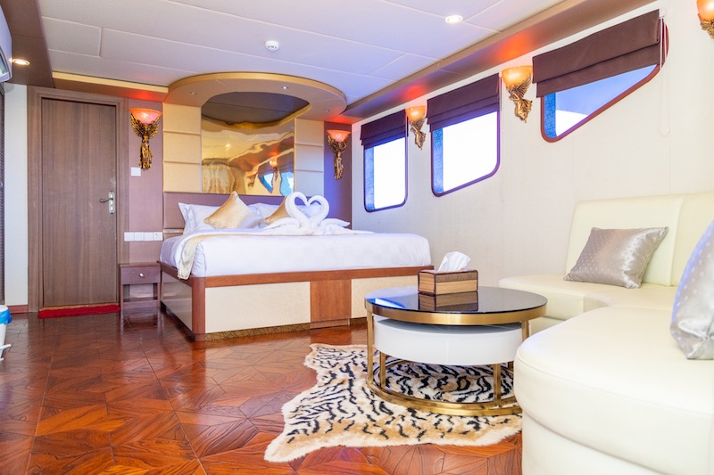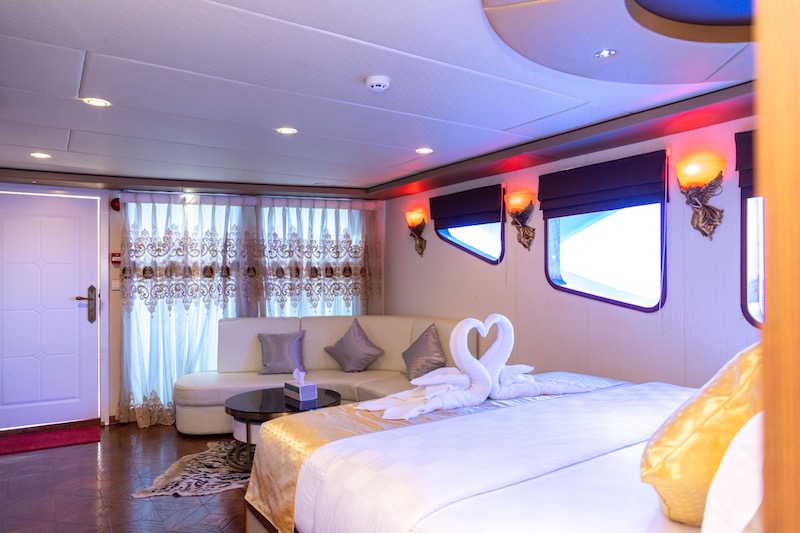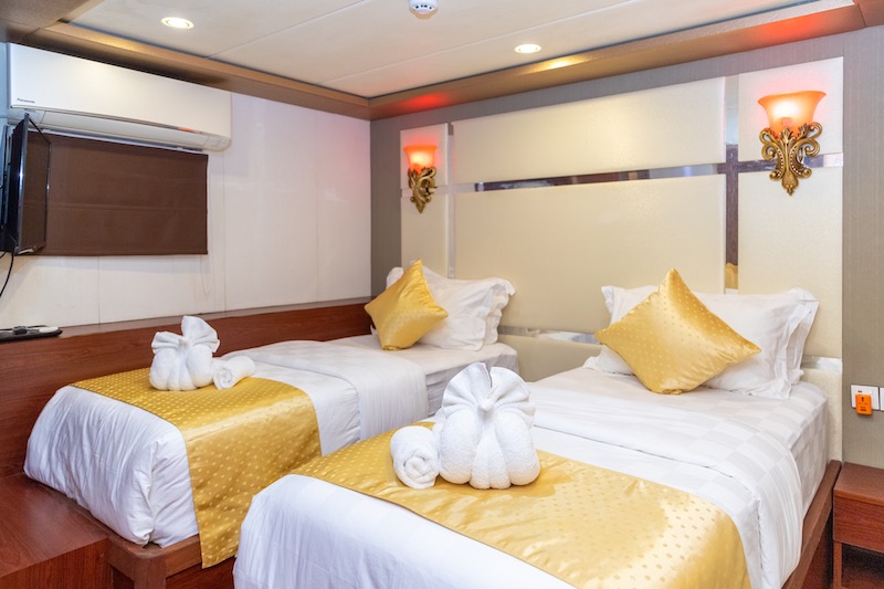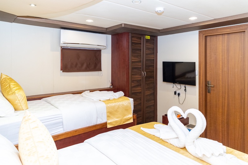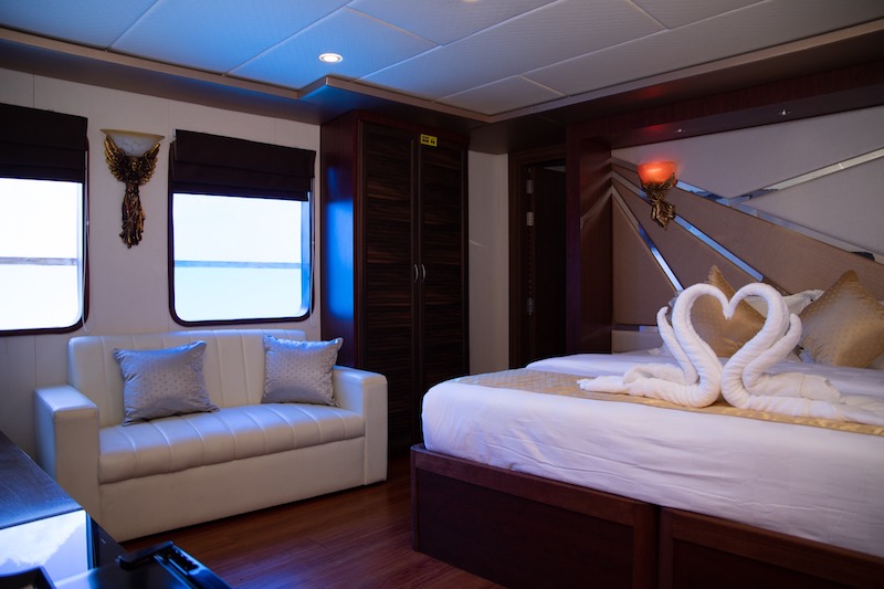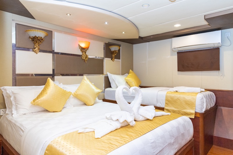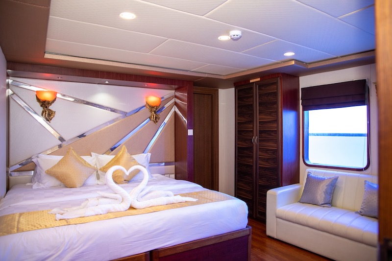 Princess Sara Liveaboard is your Ultimate Luxury Dive Experience in the Maldives boasts spacious cabins designed to provide comfort and relaxation after a day of exploration.