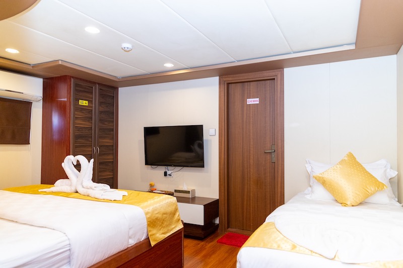 The Master suites located on the Upper deck have a double bed so can only be a double cabin, there is also a sofa in the Suite and a great seaview