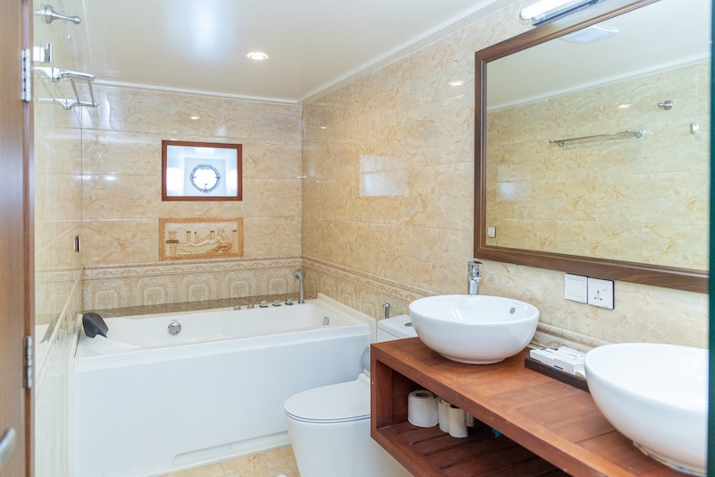All Suites and cabins are meticulously appointed with modern amenities and tasteful decor including a Tv and movies, mini-bar and en-suite bathroom with all the Suites also having a Jacuzzi bath.