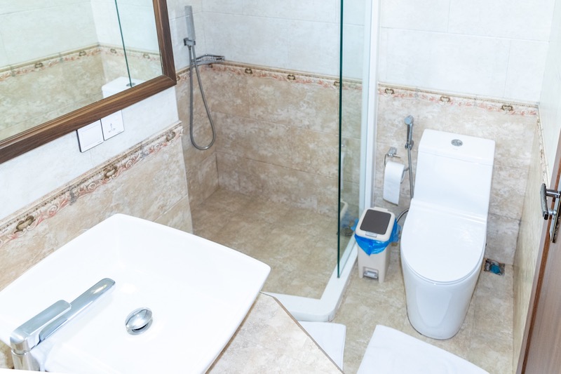 There is an ensuite bathroom with a hot and cold shower, AC, minibar, TV and movies, and WiFi.