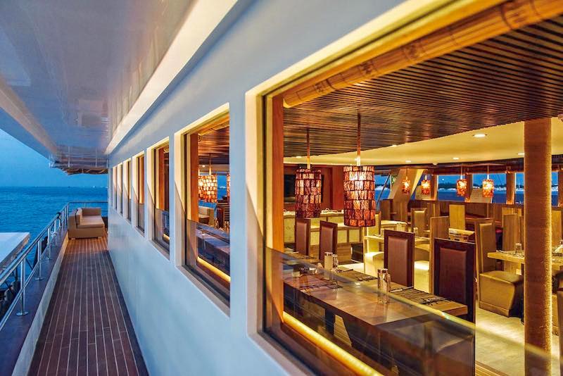 Only 18 divers with the option to use any of the 20 spa services on offer at an extra charge, Gourmet cuisine from all over world provided by highly trained chefs, bartenders and baristas, morning Yoga and fitness room including treadmill and bike, 1Gb free internet, Jacuzzi, Movie night under the stars, Kayaks, Sup and other water sports and a BBQ dinner on the beach and much more.