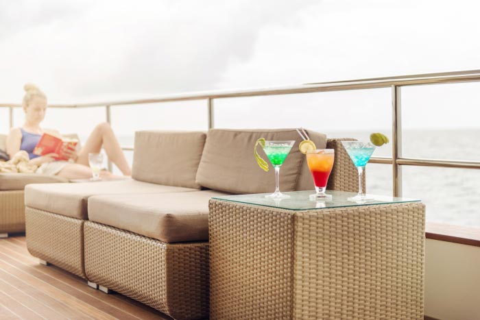 The 3 Dolphin suites have queen-size beds, beautifully decorated, the Dolphin Suites are set on the main deck and offer queen-size beds with generous seating areas.