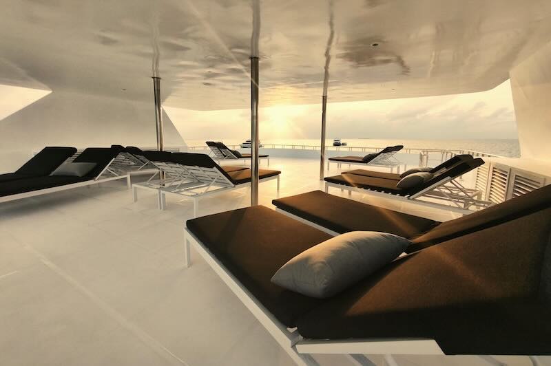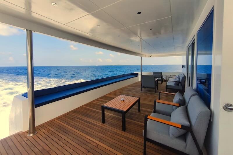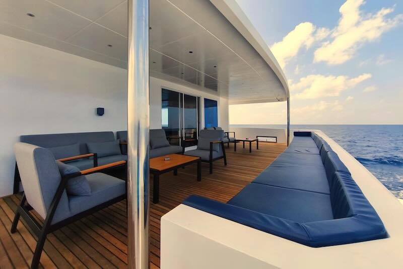 The relaxed sun deck invites guests to bask in the sun while a freshwater jacuzzi offers a refreshing way to unwind after a dive or snorkel.