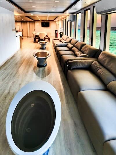 A brand new Luxury Liveaboard with a Jacuzzi and starlink internet and includes all the fees in the price with Free Nitrox and a beer or glass of wine with dinner and welcomes snorkelers as well as having a full dive schedule for the divers.