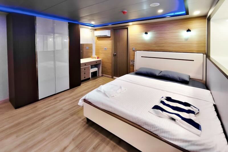 On the lower deck, seven cozy Standard Cabins provide a restful retreat, perfect for unwinding after a day of diving or snorkeling.