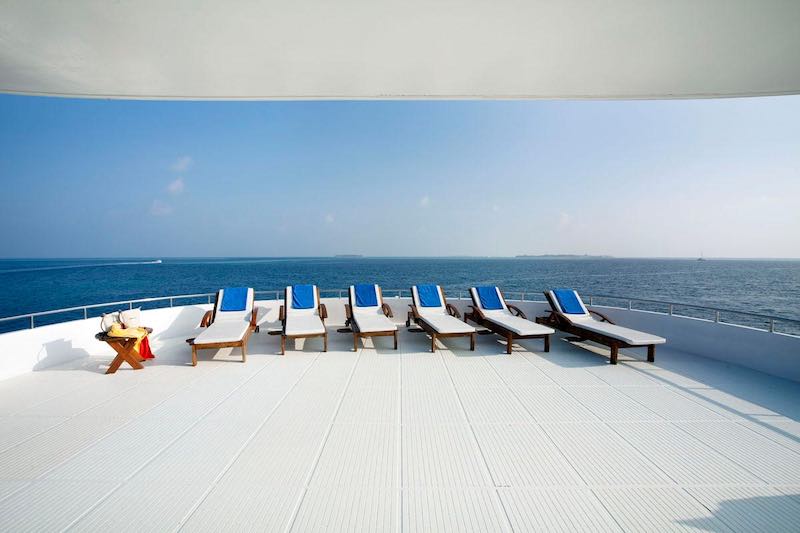 The Duke of York is accompanied by a comfortable dhoni boat used for diving, snorkeling, fishing, marine activities and to land on sand banks or desert islands and along with the more normal scuba diving they are also able to offer cruises with the assistance and material to dive with rebreathers.