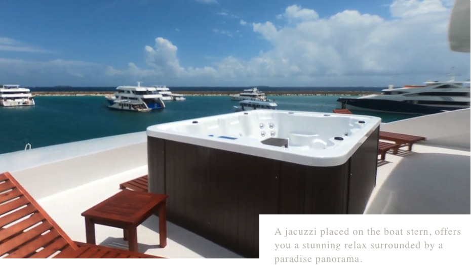 She is a fully equipped luxury cruising boat and is equipped with a dhoni (a traditional Maldivian vessel) used for diving the Maldives most amazing reefs and to keep all the tanks and compressors separate so you are not bothered by the noise.