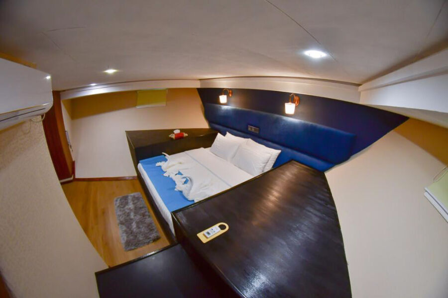 Blue has 11 cabins for 22 guests spaced out on 3 different decks consisting of 7 lower deck deluxe cabins, 2 main deck Master cabins and 2 Ocean view cabins on the Upper deck.