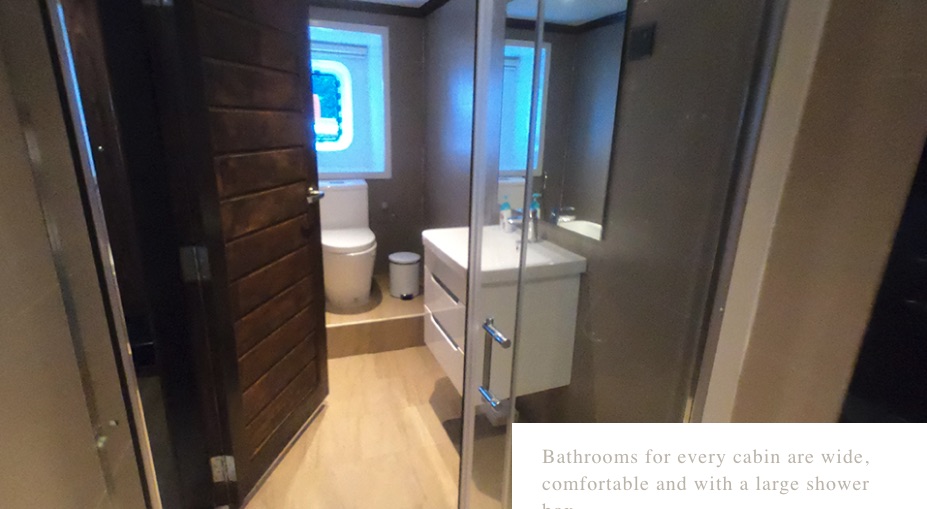All cabins are furnished with independent air conditioner and a bathroom with spacious shower rooms.