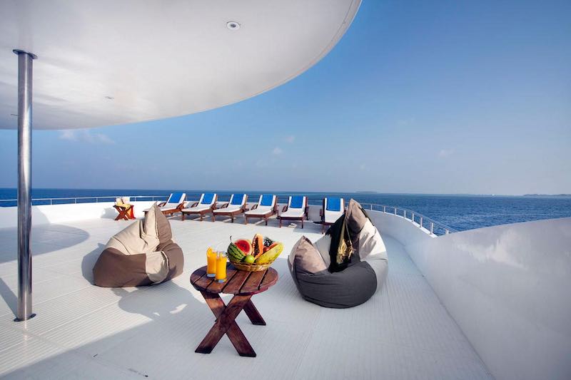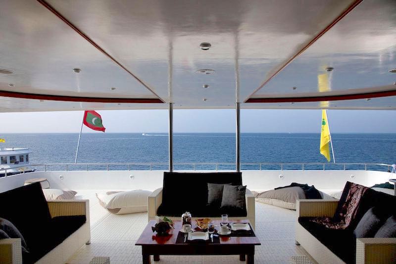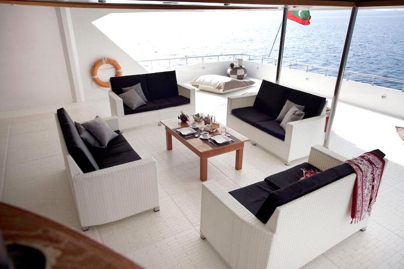 The Duke of York is accompanied by a comfortable dhoni boat used for diving, snorkeling, fishing, marine activities and to land on sand banks or desert islands and along with the more normal scuba diving they are also able to offer cruises with the assistance and material to dive with rebreathers.