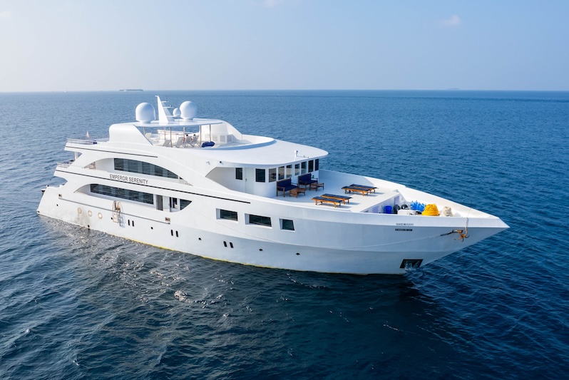 Emperor Serenity is a brand new 40m luxury modern liveaboard with an experienced crew built to a very high standard accommodating 26 guests in 13 cabins consisting of 4 double and twin bed cabins on the upper deck, 2 double or twin bed cabins on the main deck, 5 double/twin bed cabins and 2 double only cabins on the lower deck.