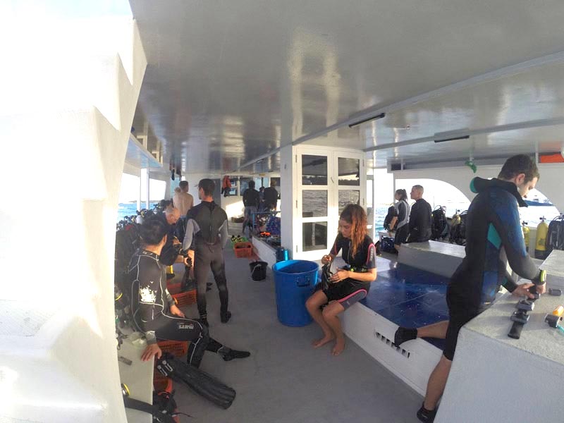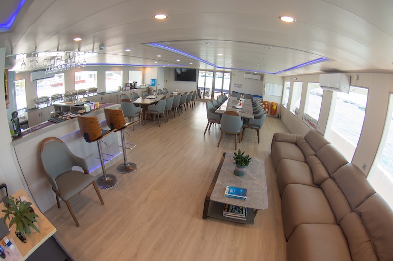 The sundeck is perfect for catching those sunrays or having a nap and the Upper deck boasts a covered and open area ideal for watching photos and footage from your diving or just relaxing, star gazing and soaking up the wonderful Maldivian atmosphere.