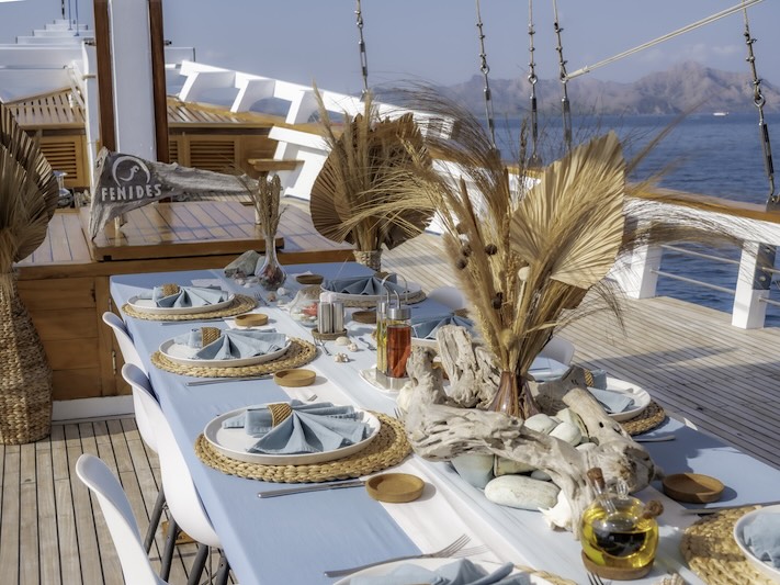 Fenides has just five spacious cabins so the boat caters to a maximum of 11 guests ensuring an intimate and exclusive atmosphere.