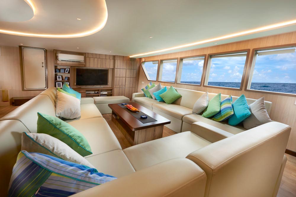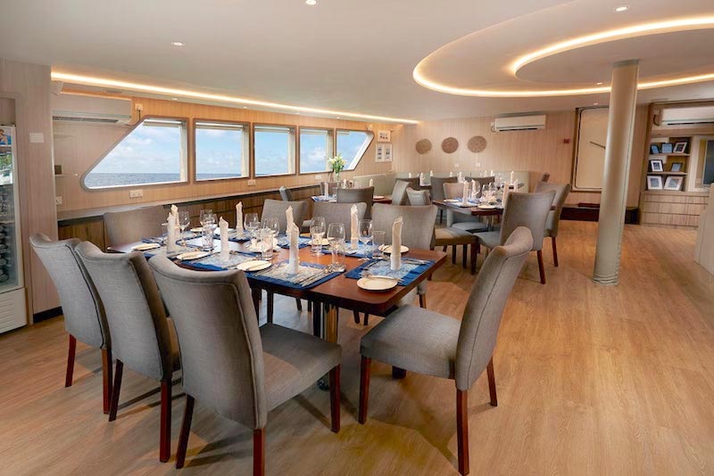 The lounge, restaurant and camera room is located on the main deck. In the lounge is an entertainment center, pantry and all the facilities and creature comforts to make your stay more comfortable and photographers can use the dedicated camera room for the preparation and storage of their equipment.