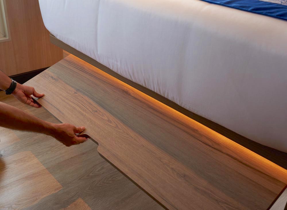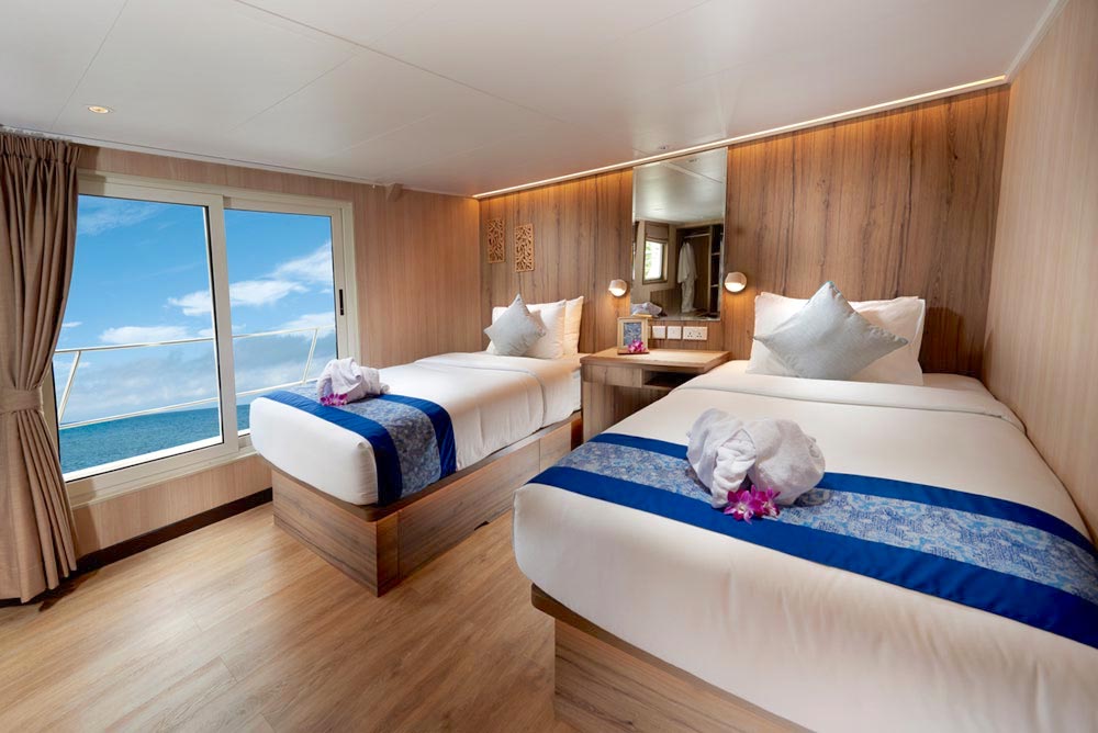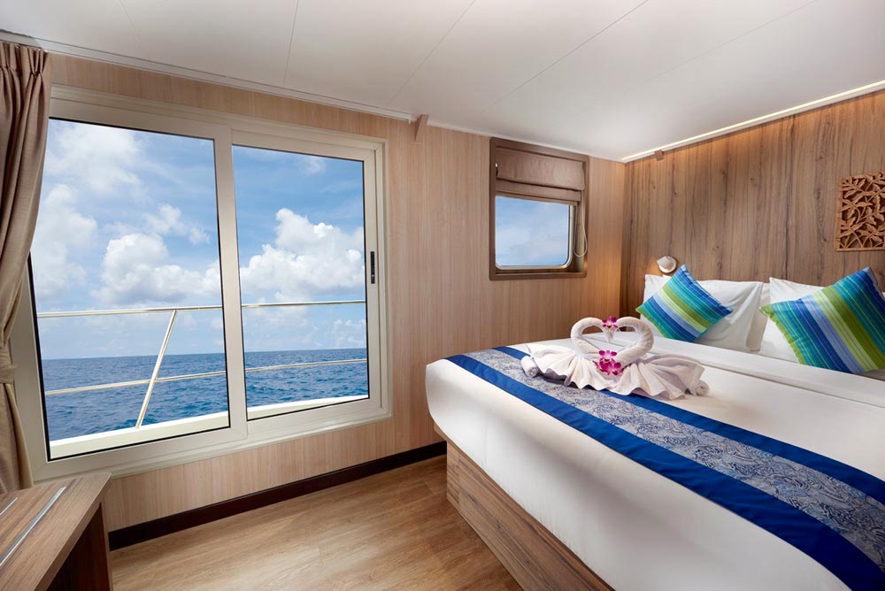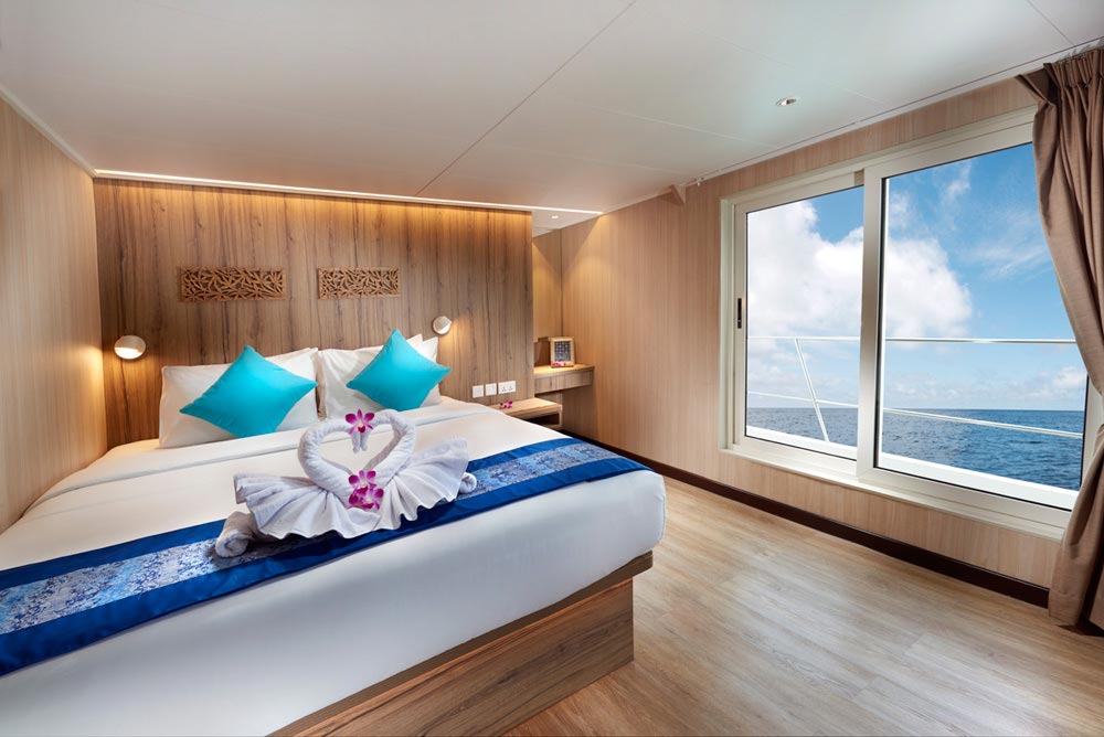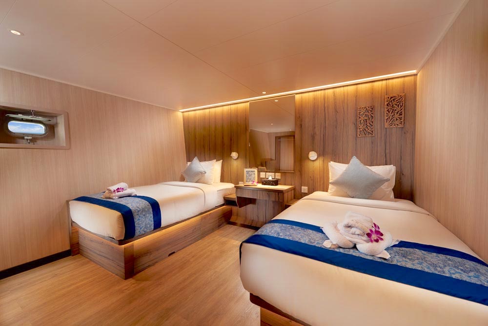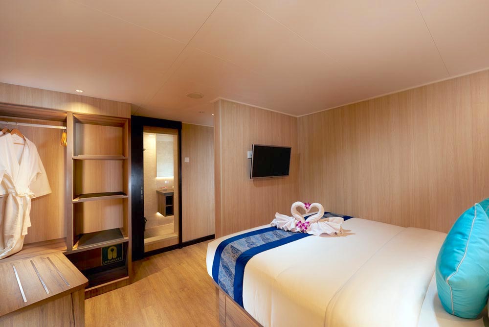 The Lower Deck Cabin are available in king, queen and super-single size bed configurations.