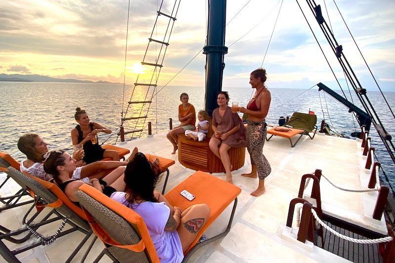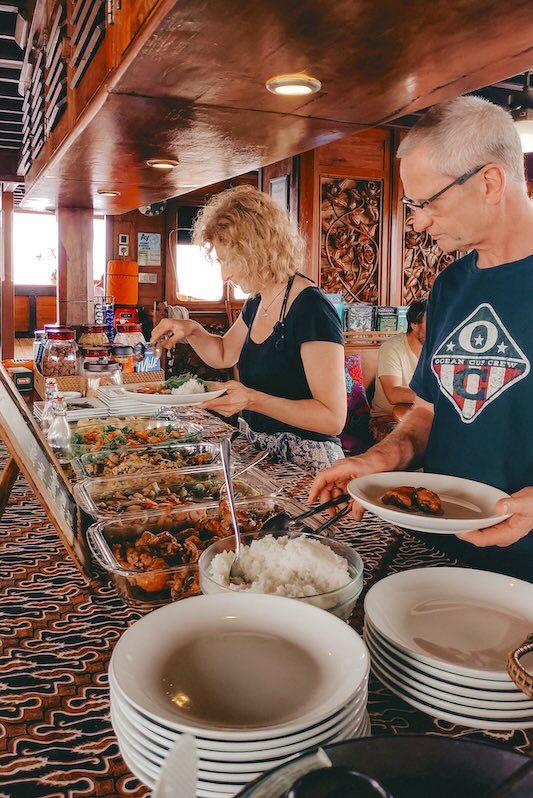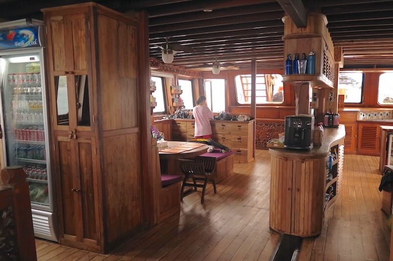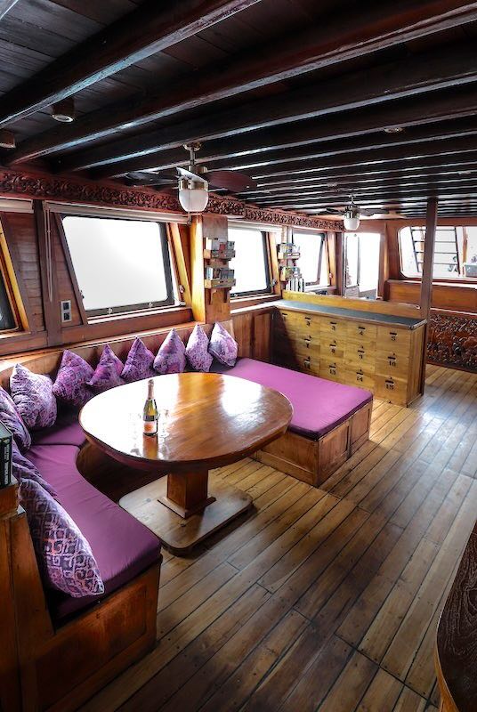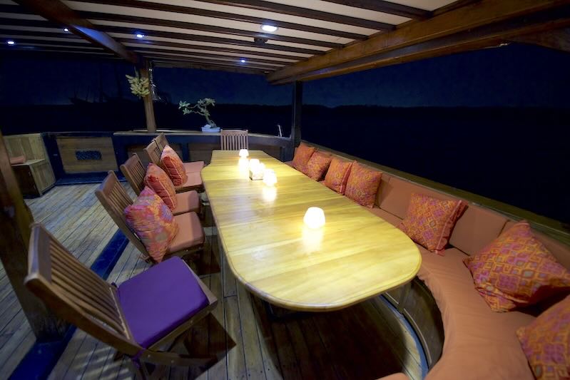 Indonesian and International meals will be served in the spacious saloon or in the outdoor sitting area at the stern of the boat, well protected from wind whilst sailing.