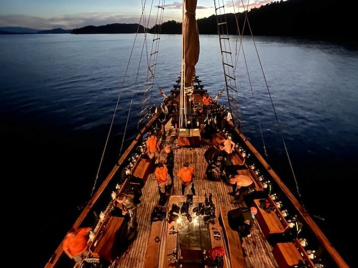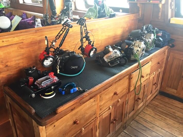 The comfortable dive deck in front of the boat is one of the most spacious on any Indonesian liveaboard.