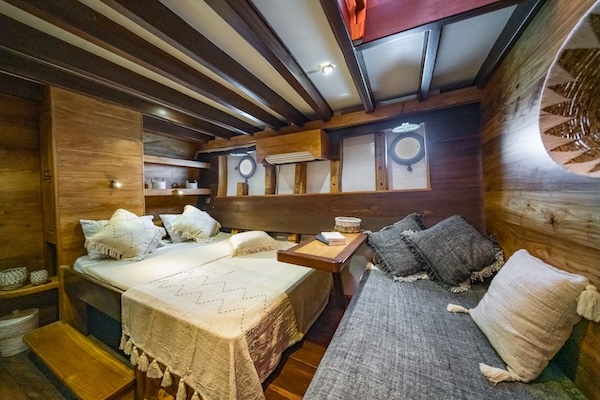 The cabin is equipped with an adjoining bathroom, air conditioning, and ample storage space, ensuring a comfortable and convenient stay.