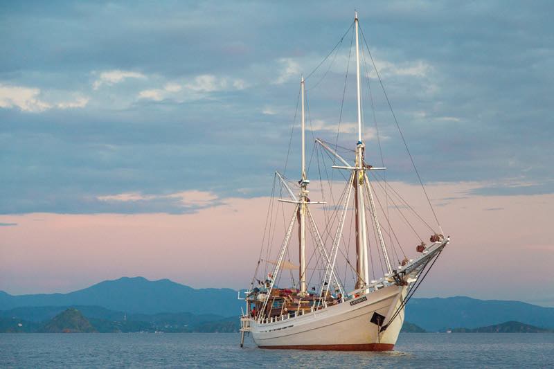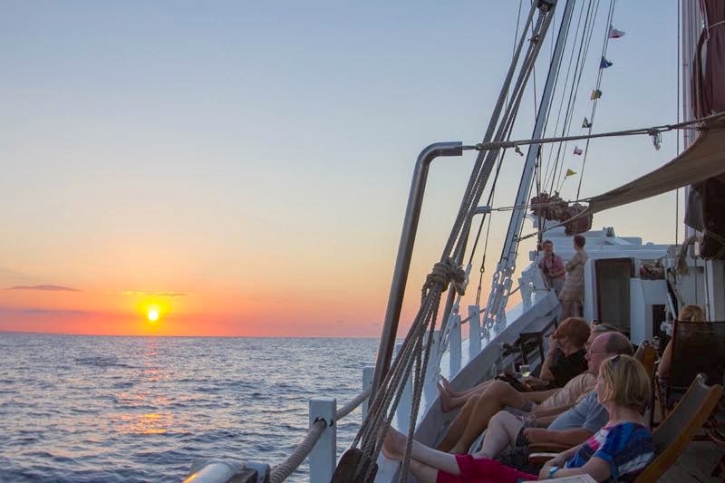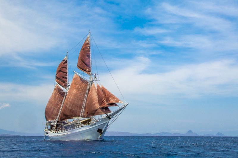 Katharina cruises across the archipelago all the way from Borneo to Papua in the west and east and Sumba and Maluko in the south and north, following the seasons and the winds, and staying one step ahead of the rains so as to provide optimum cruising conditions for our guests.