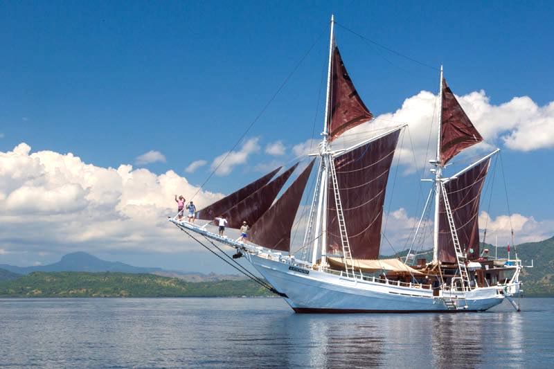 The company's fleet comprises the 12-cabin Ombak Putih and the 6-cabin Katharina, both exemplifying the traditional phinisi design.