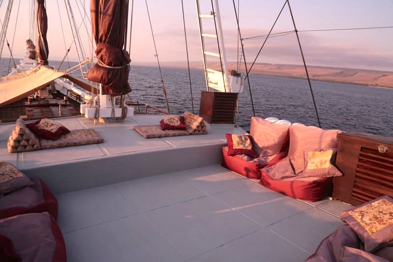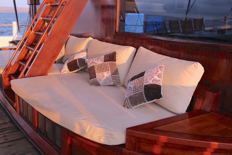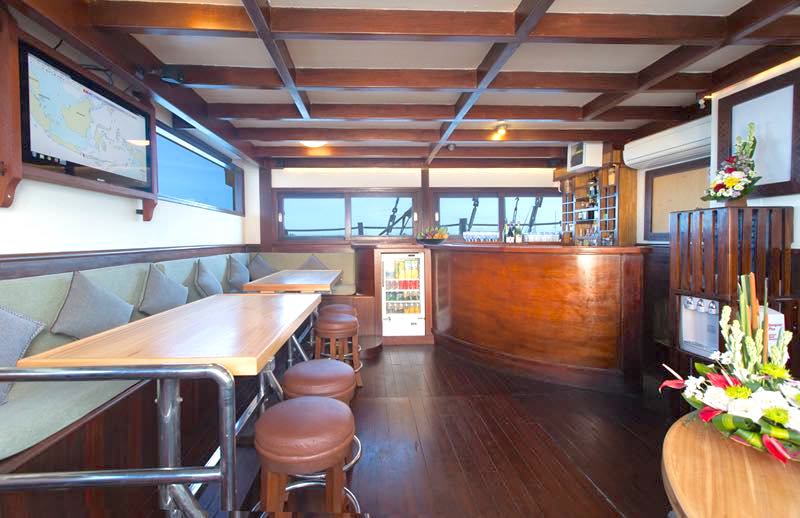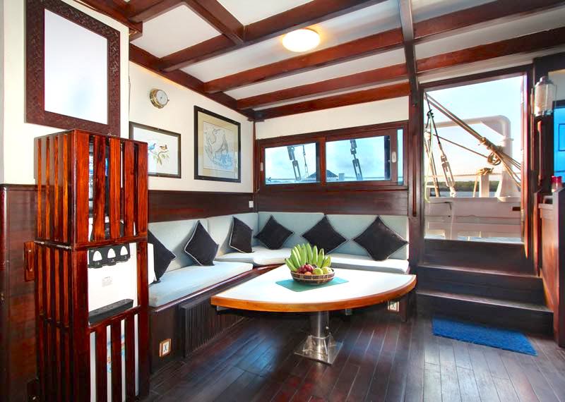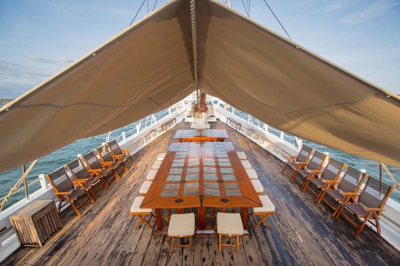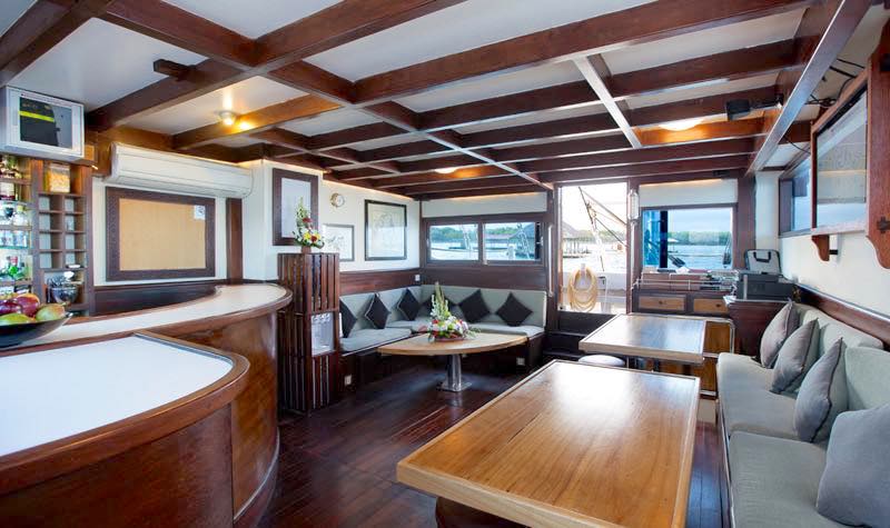 Working with the unique heritage this vessel uses only the best traditional materials, shaped by highly skilled Indonesian craftsmen but behind the scenes is the use of the most up-to-date technology and she is now equipped with a super yacht grade AC station and they have optimised their systems to the latest safety standards.
