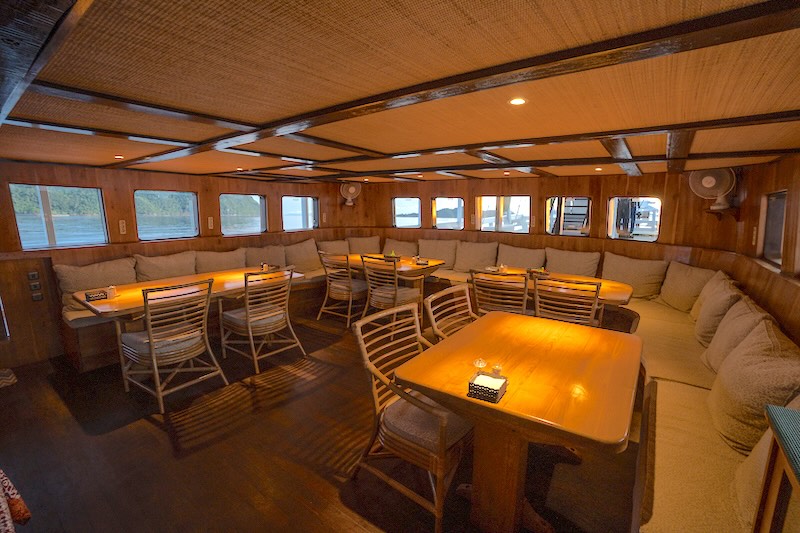 The Lounge is the place where everybody meets for meals, shares photos and videos betweendives, and socializes. Spend convivial hours playing games, telling tall tales, listening to music, or just kicking back at the end of the diving day with a cold Bintang (Indonesian beer) or a glass of fine Australian wine.