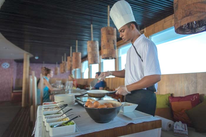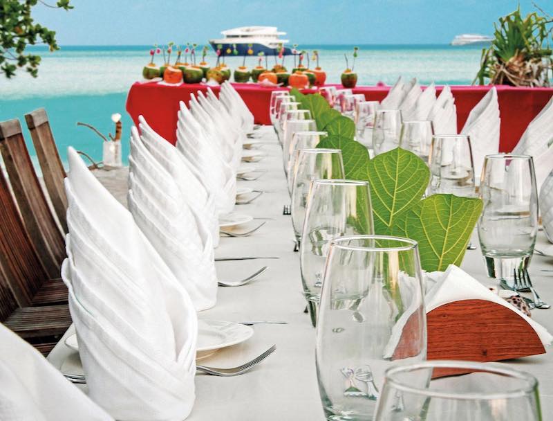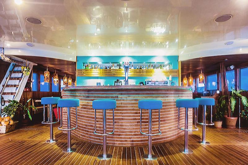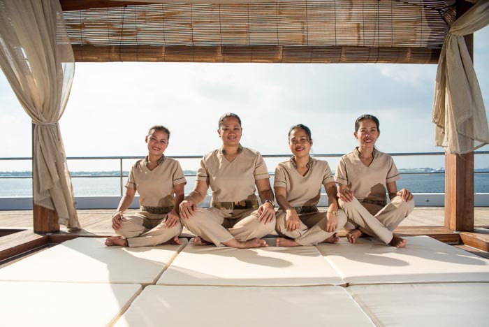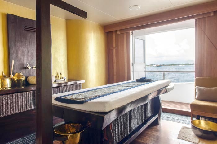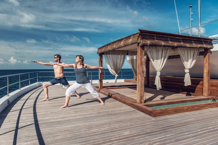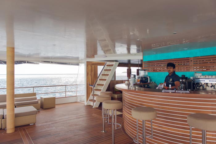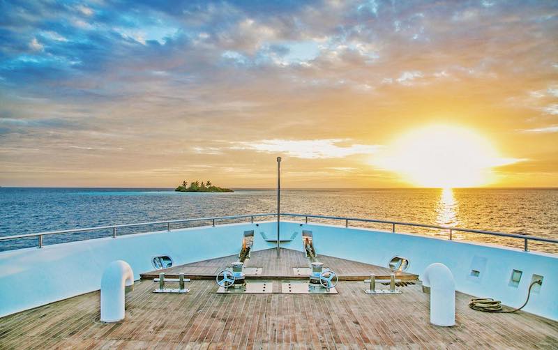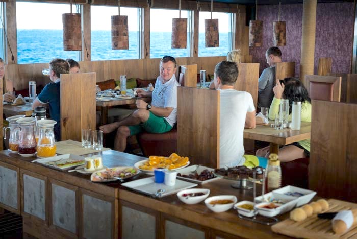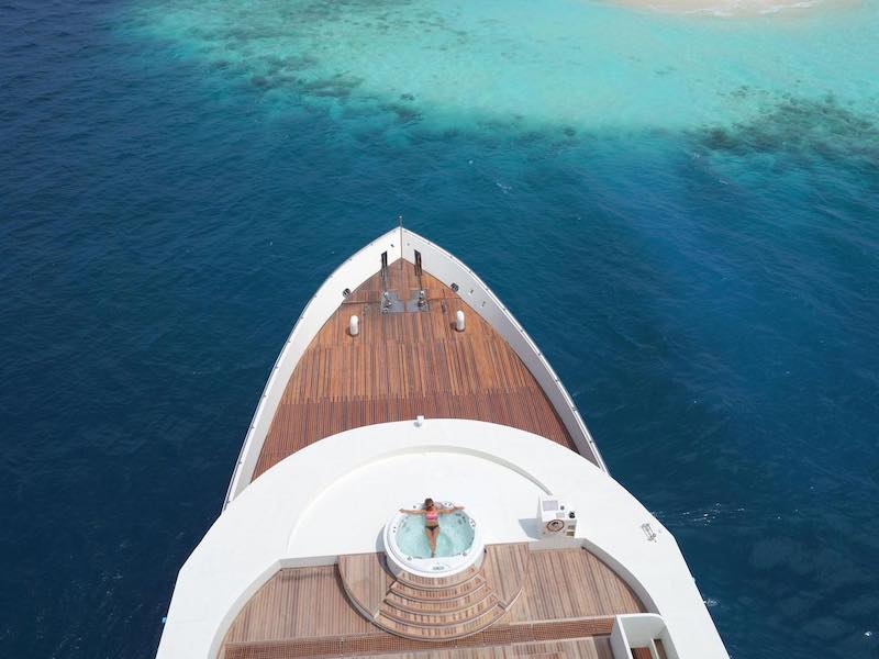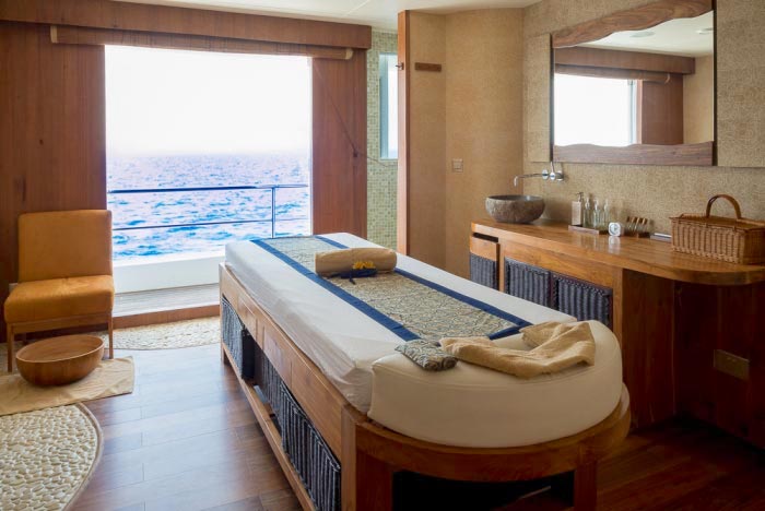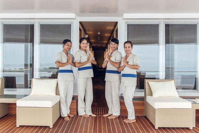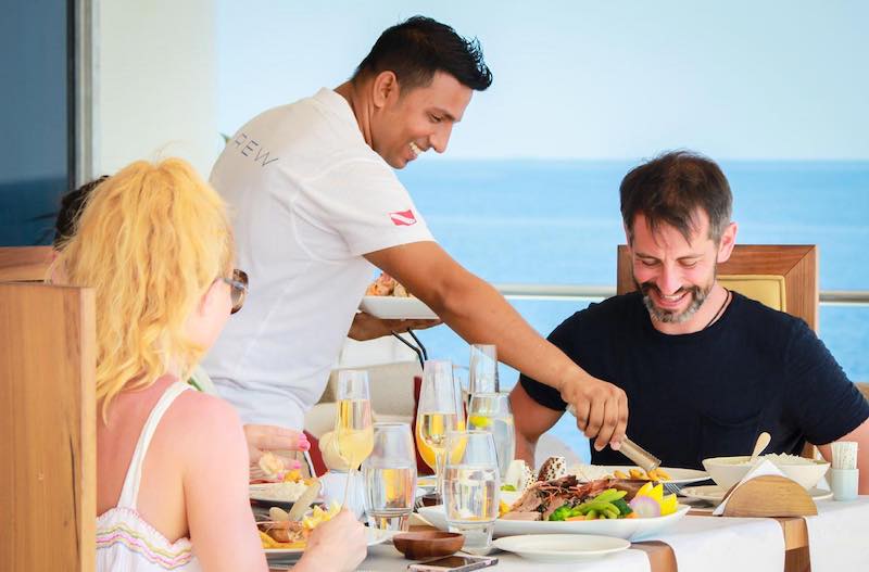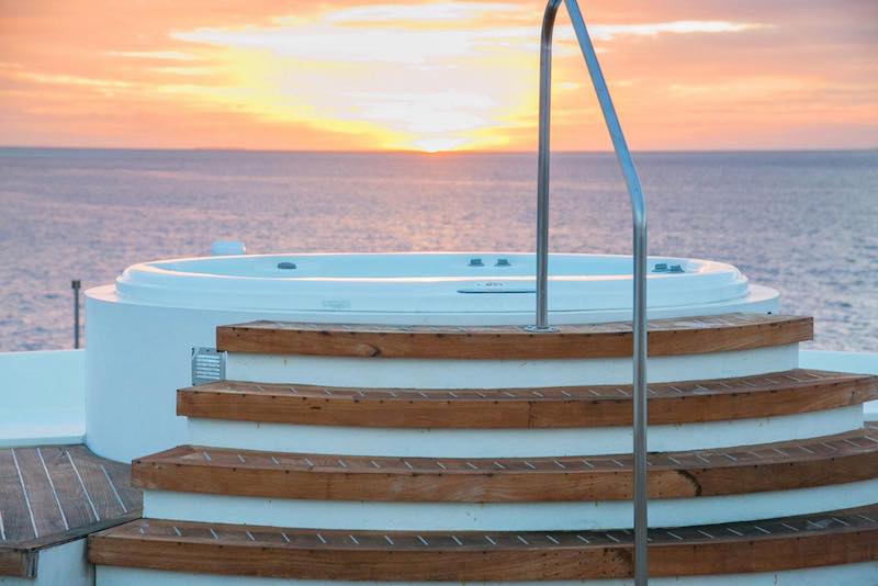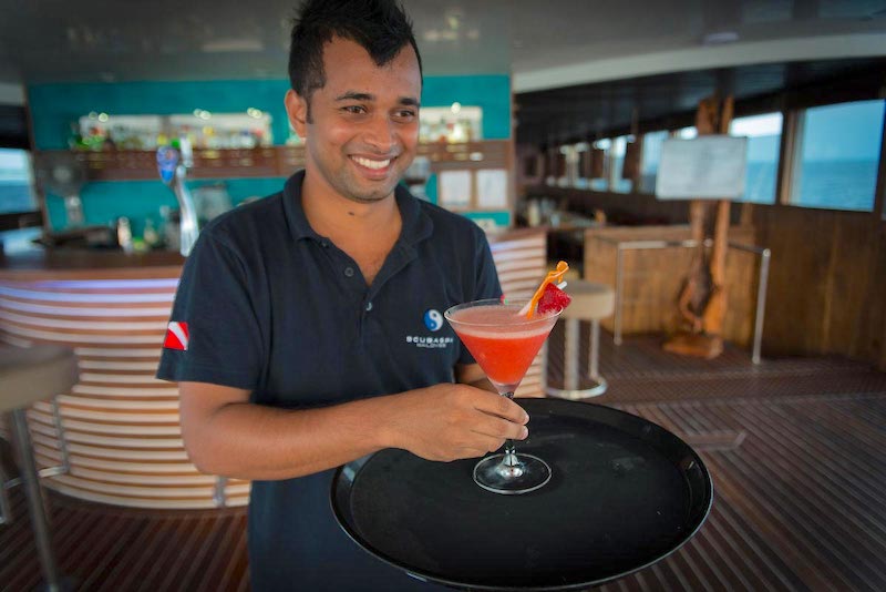 Only 18 divers with the option to use any of the 20 spa services on offer at an extra charge, Gourmet cuisine from all over world provided by highly trained chefs, bartenders and baristas, morning Yoga and fitness room including treadmill and bike, 1Gb free internet, Jacuzzi, Movie night under the stars, Kayaks, Sup and other water sports and a BBQ dinner on the beach and much more.