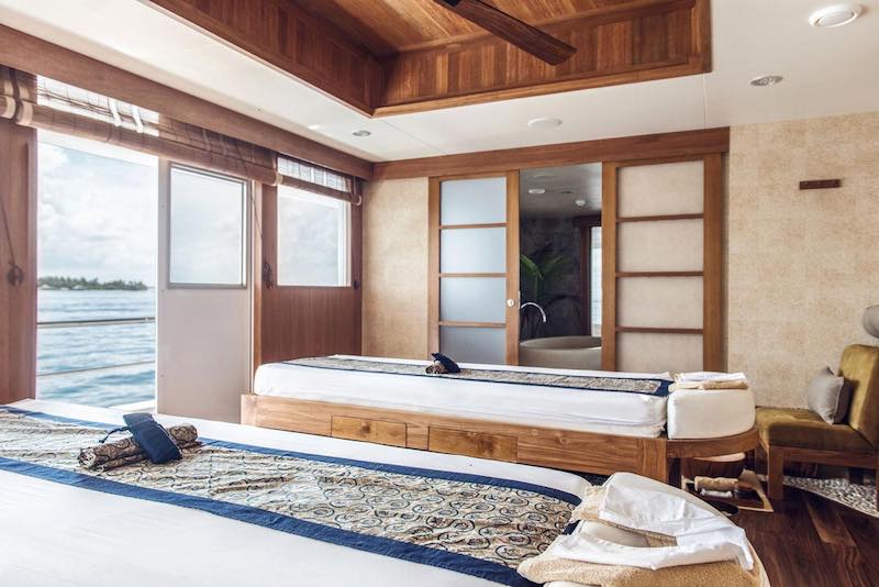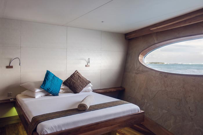 Set on the main deck, Manta Suites are Scubaspa's premium cabins combining comfortable twin or king-size beds with thoughtfully appointed seating areas.