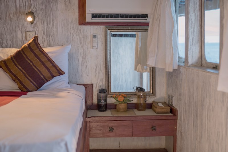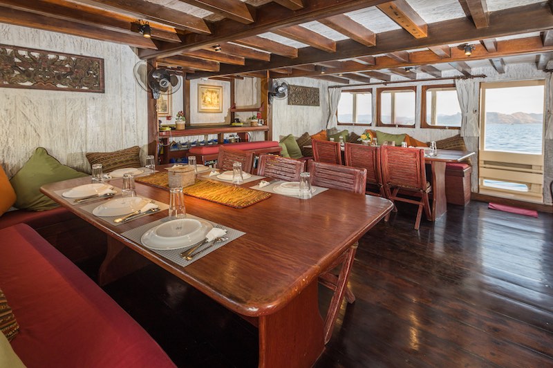 The main lounge and inside dining areas are fully air-conditioned, whilst all the windows can be opened if preferred to invite in the refreshing sea breeze anmd for those seeking relaxation and recreation, the Seven Seas offers a shaded lounging area aft on the upper deck, as well as shaded lounge beds in front of the wheelhouse, ideal for enjoying sunsets and cocktails in style.