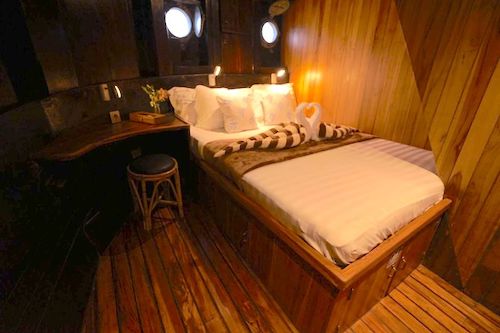 With five freshly prepared meals per day with a perfect blend of Indonesian, European and Japanese specialties with soft drinks and beer all included in the price you can't go wrong. The cabins are all also longitudinally aligned with the vessel, so you sleep in the direction of the vessel's movement.