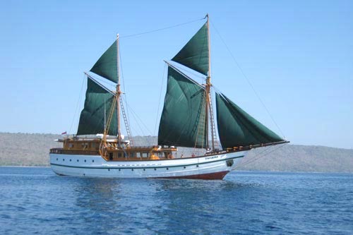 Tambora was built by traditional boat builders on the island of Sulawesi, in the centuries-old tradition of a wooden Phinisi.