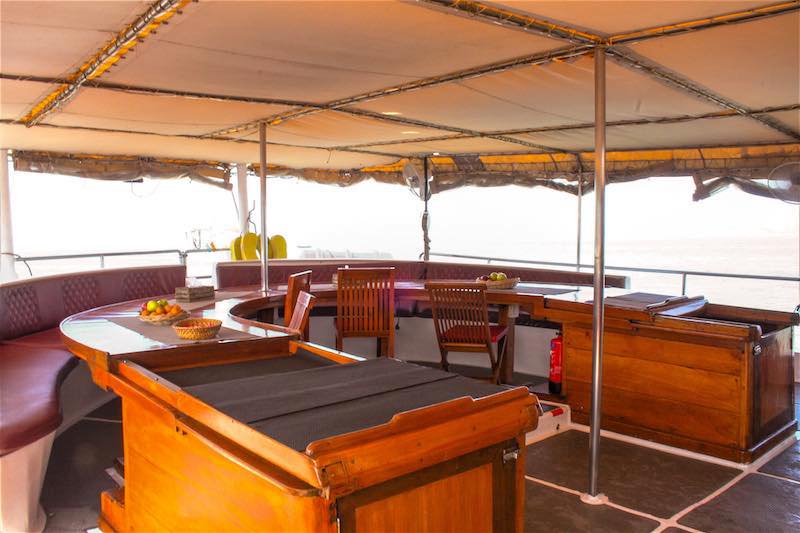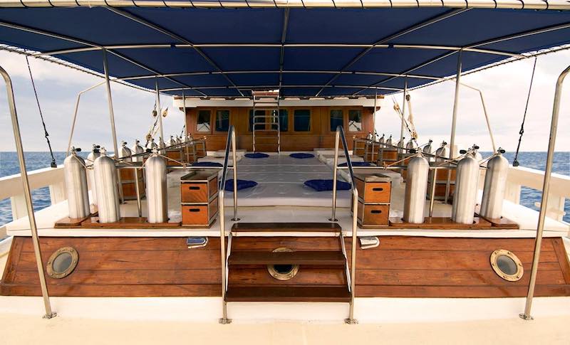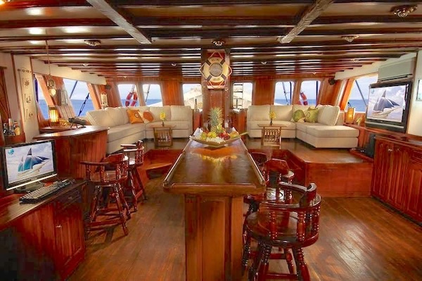 The Phinisi offers various communal areas including an indoor lounge equipped with Plasma screen, library & music, outdoor / outdoor dining area, cushion loungers and sundeck where you can chill out and relax when you are not diving.